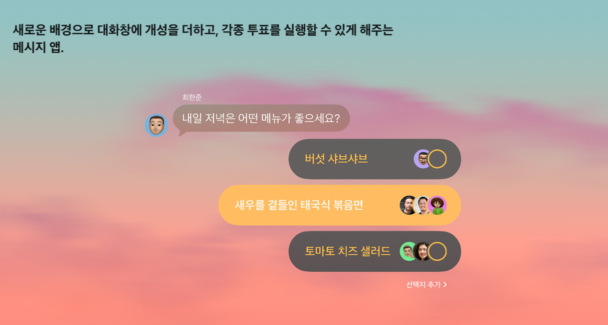 - 메시지: 투표(polls), 대화 배경 커스터마이즈, 그룹 타이핑 인디케이터 등.